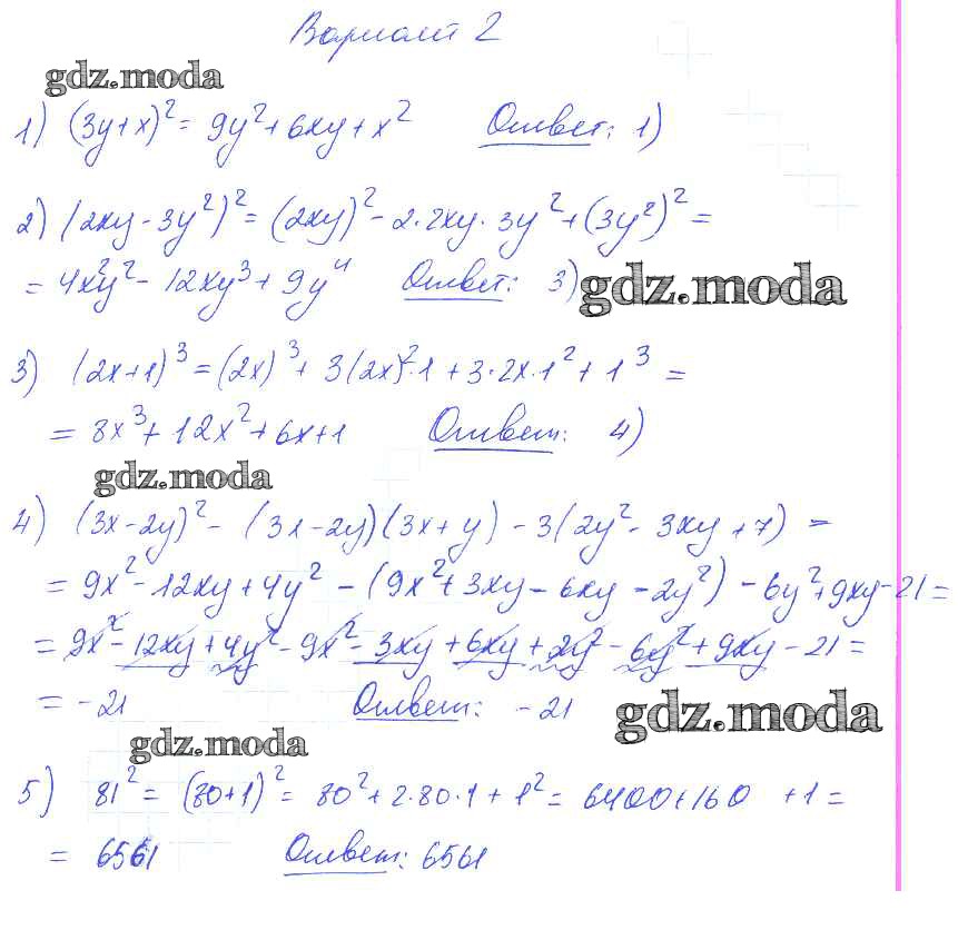 ГДЗ решение к заданию № вариант 2 Алгебра 7 класс самостоятельные и контрольные работы Глазков Ю.А. (к уч.Макарычева) Экзамен 2019 ФГОС бесплатно на гдз.мода!