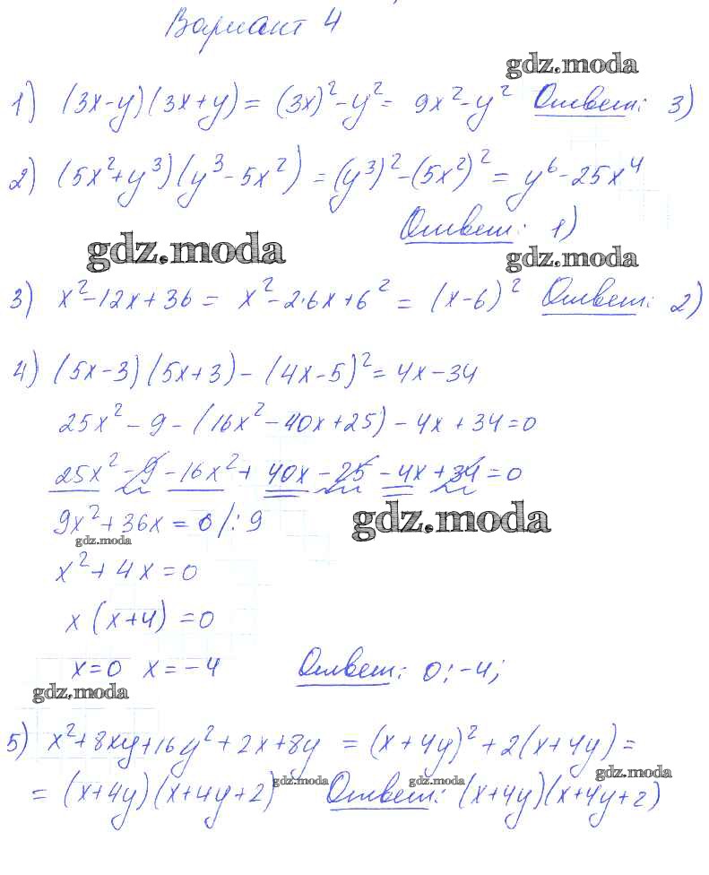 ГДЗ решение к заданию № вариант 4 Алгебра 7 класс самостоятельные и контрольные работы Глазков Ю.А. (к уч.Макарычева) Экзамен 2019 ФГОС бесплатно на гдз.мода!