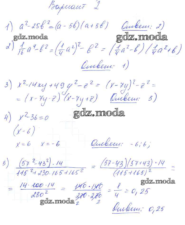 ГДЗ решение к заданию № вариант 2 Алгебра 7 класс самостоятельные и контрольные работы Глазков Ю.А. (к уч.Макарычева) Экзамен 2019 ФГОС бесплатно на гдз.мода!