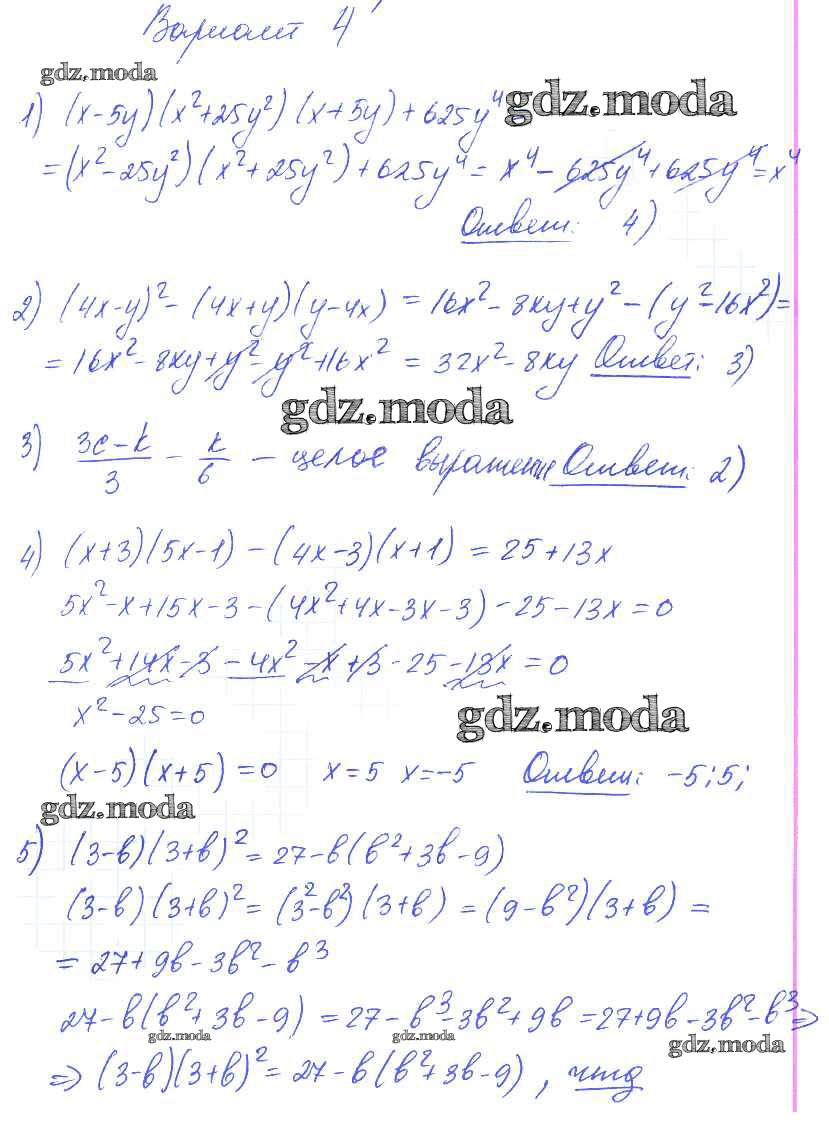 ГДЗ решение к заданию № вариант 4 Алгебра 7 класс самостоятельные и контрольные работы Глазков Ю.А. (к уч.Макарычева) Экзамен 2019 ФГОС бесплатно на гдз.мода!
