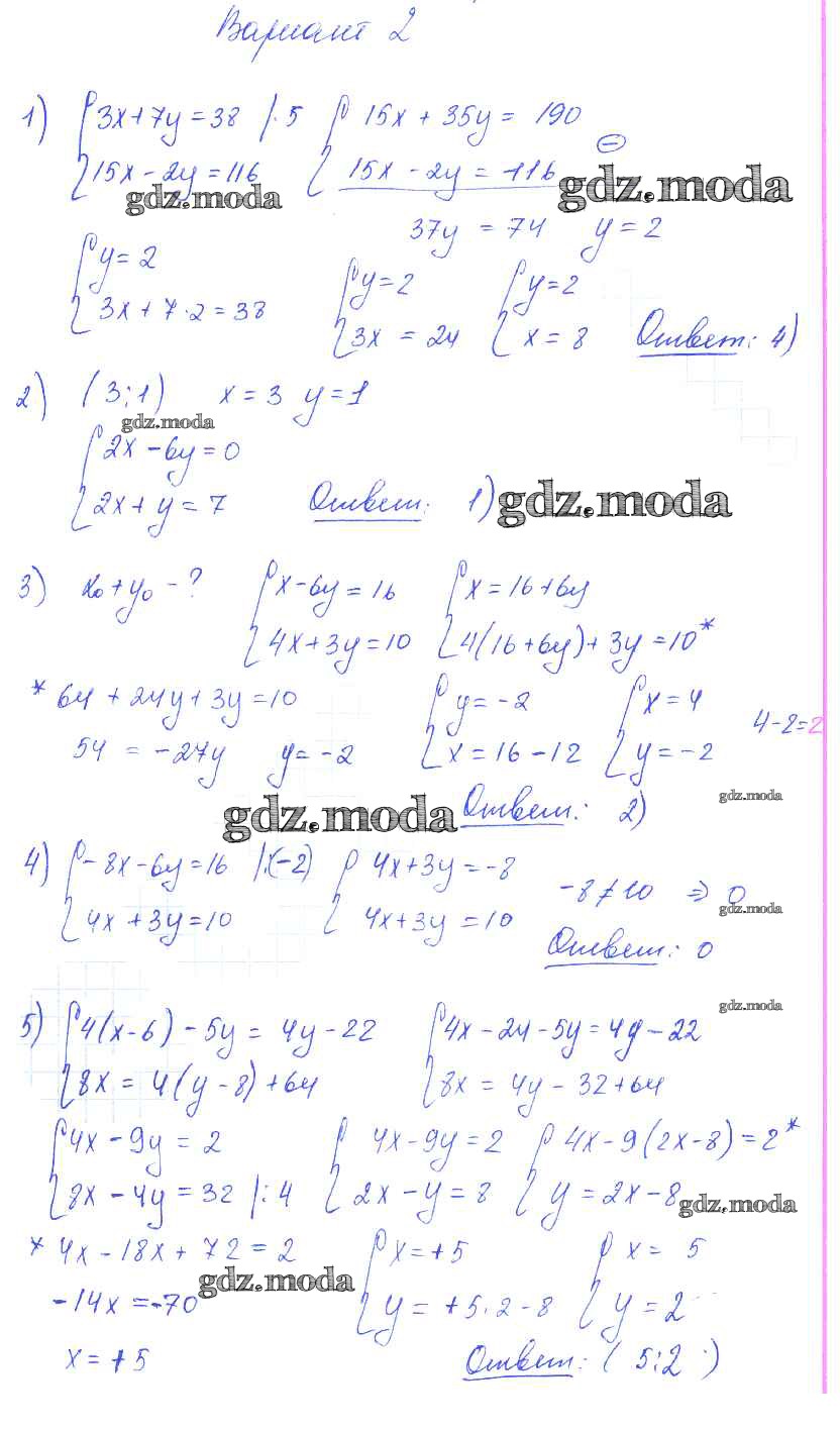 ОТВЕТ на задание № вариант 2 Самостоятельные и контрольные работы по Алгебре 7 класс Глазков УМК