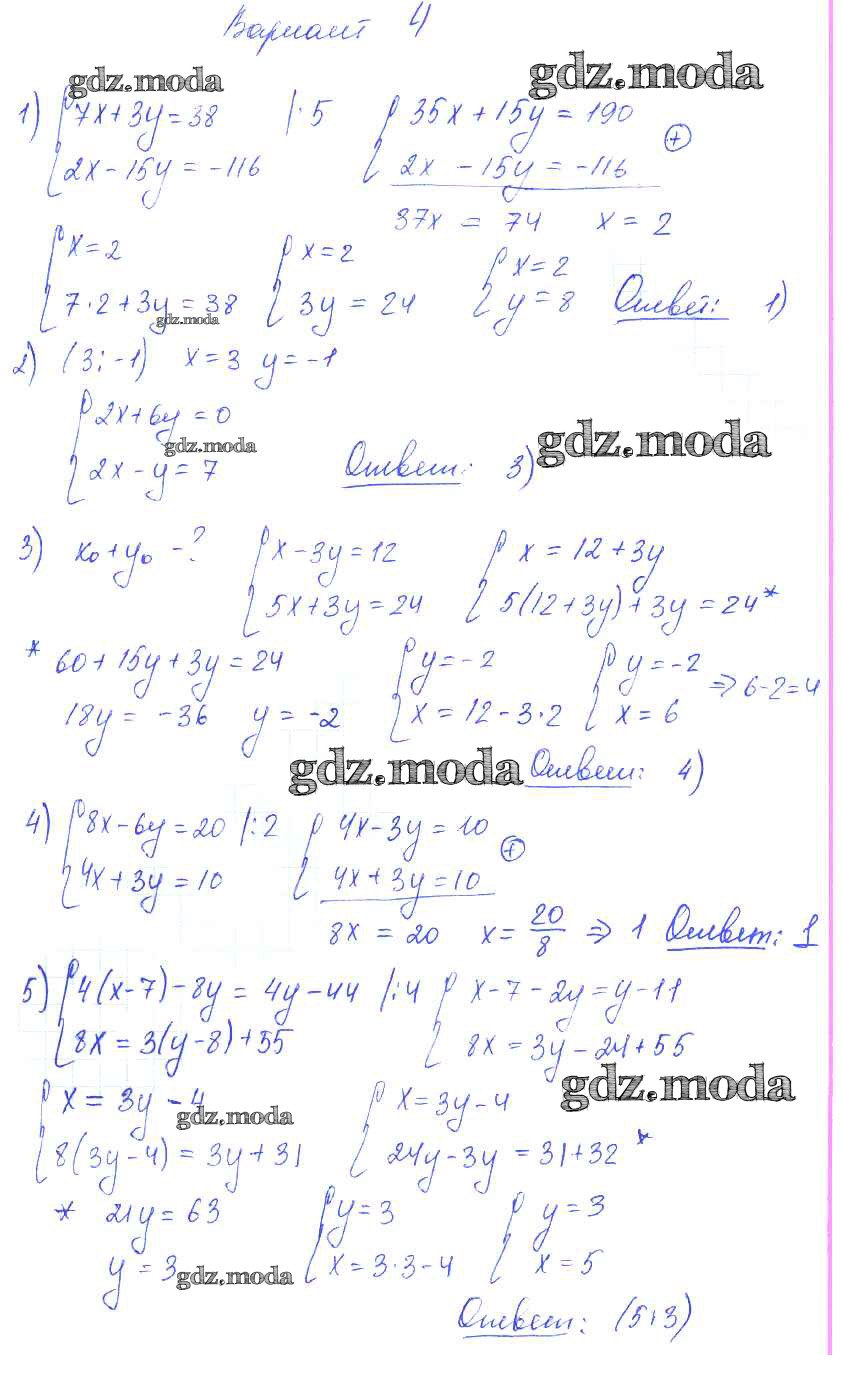 ОТВЕТ на задание № вариант 4 Самостоятельные и контрольные работы по Алгебре 7 класс Глазков УМК
