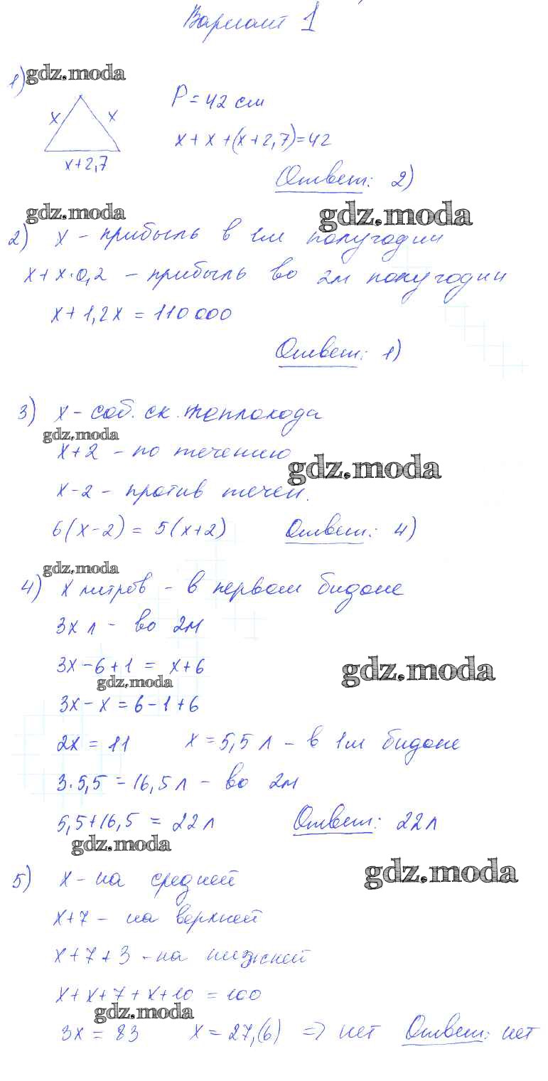 ГДЗ решение к заданию № вариант 1 Алгебра 7 класс самостоятельные и контрольные работы Глазков Ю.А. (к уч.Макарычева) Экзамен 2019 ФГОС бесплатно на гдз.мода!