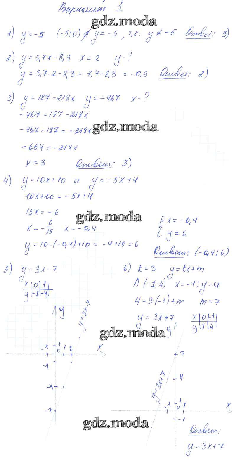 ОТВЕТ на задание № вариант 1 Самостоятельные и контрольные работы по Алгебре 7 класс Глазков УМК