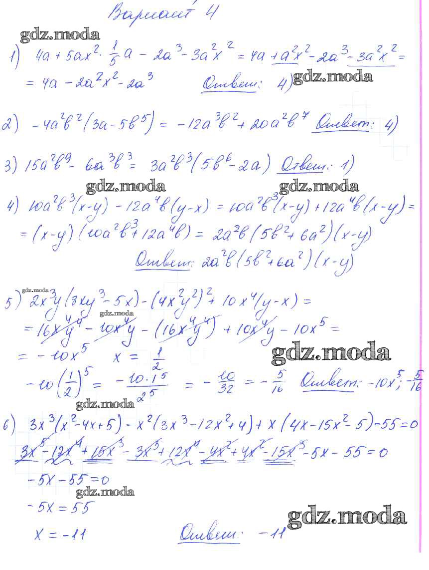 ГДЗ решение к заданию № вариант 4 Алгебра 7 класс самостоятельные и контрольные работы Глазков Ю.А. (к уч.Макарычева) Экзамен 2019 ФГОС бесплатно на гдз.мода!