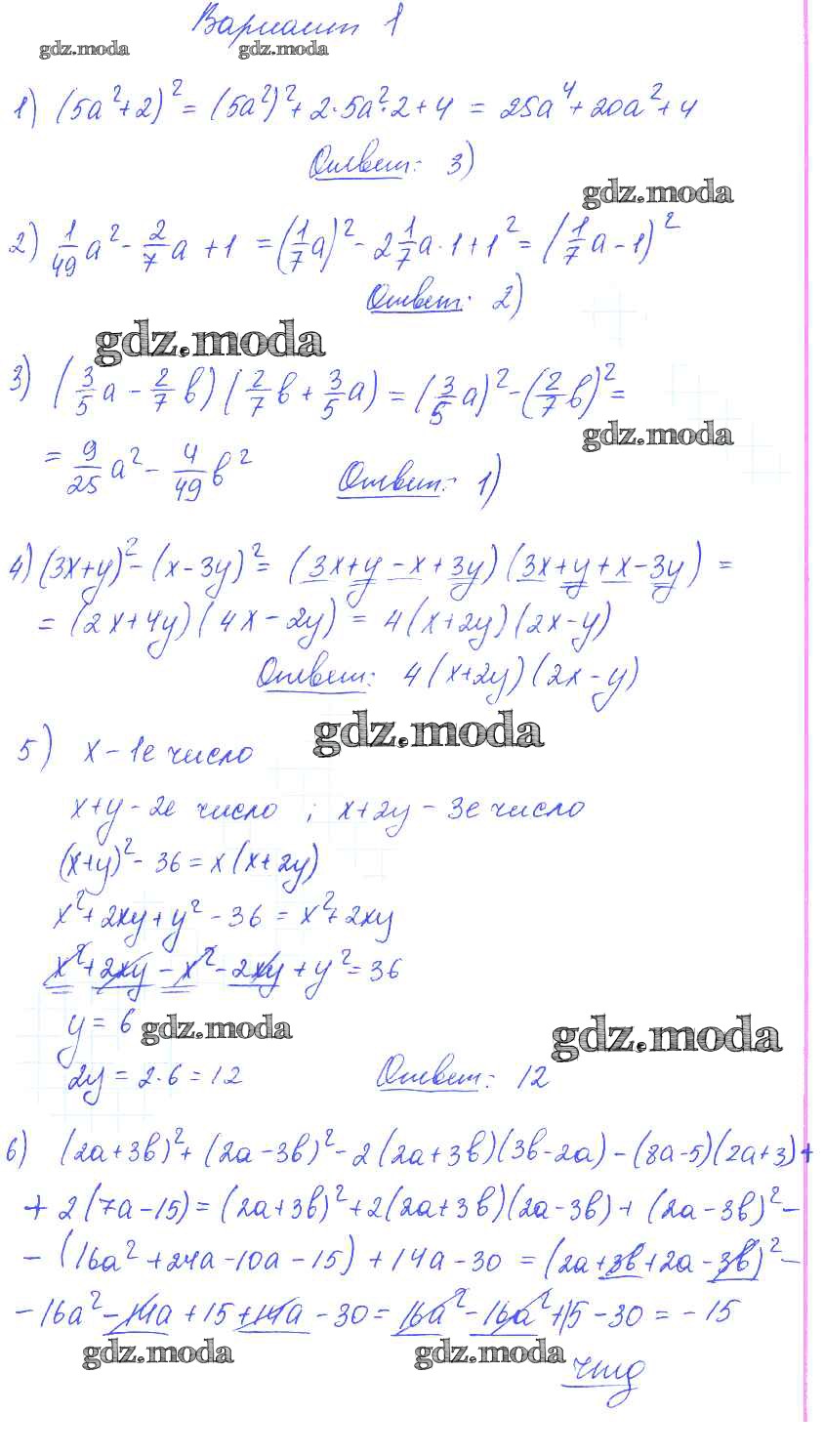ГДЗ решение к заданию № вариант 1 Алгебра 7 класс самостоятельные и контрольные работы Глазков Ю.А. (к уч.Макарычева) Экзамен 2019 ФГОС бесплатно на гдз.мода!