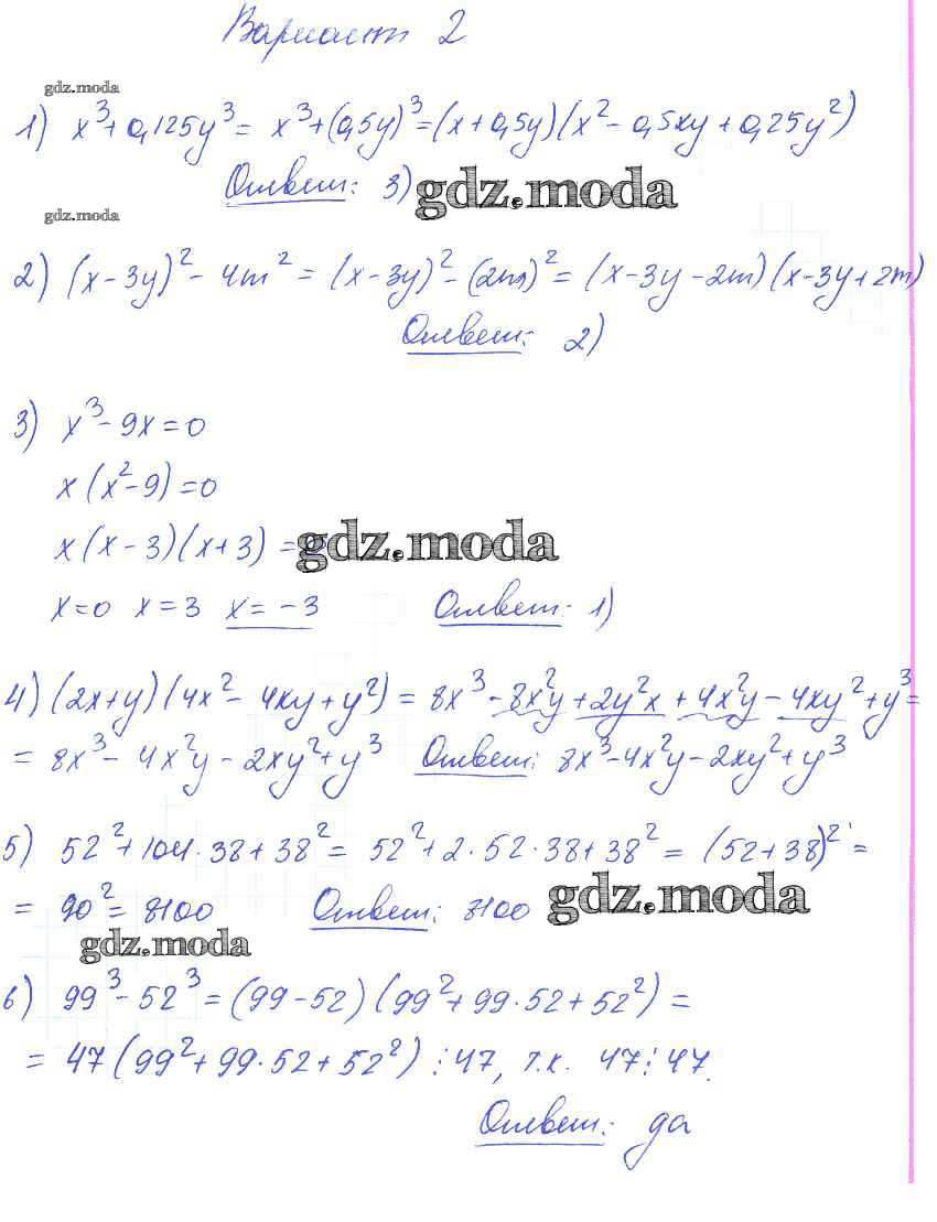 ГДЗ решение к заданию № вариант 2 Алгебра 7 класс самостоятельные и контрольные работы Глазков Ю.А. (к уч.Макарычева) Экзамен 2019 ФГОС бесплатно на гдз.мода!