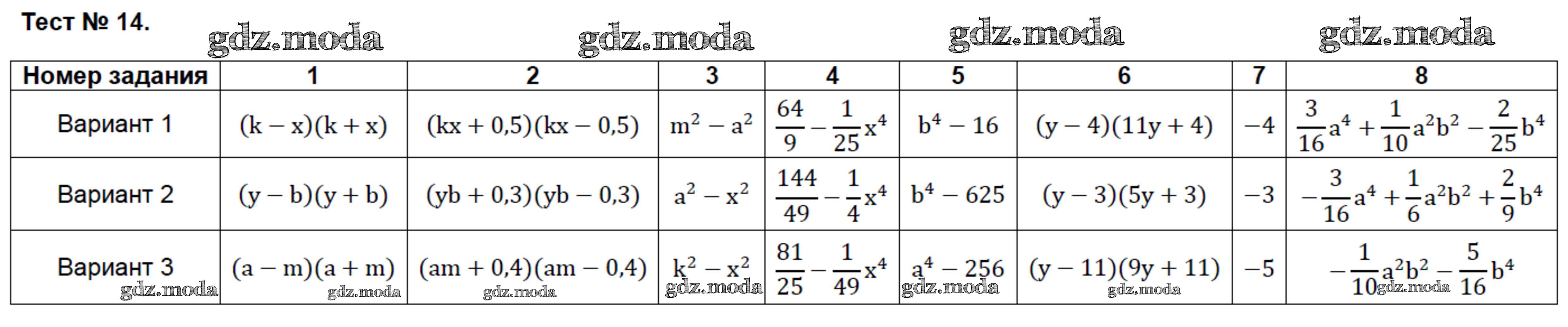 ОТВЕТ на задание № 14 Контрольно-измерительные материалы (КИМ) по Алгебре 7 класс Глазков