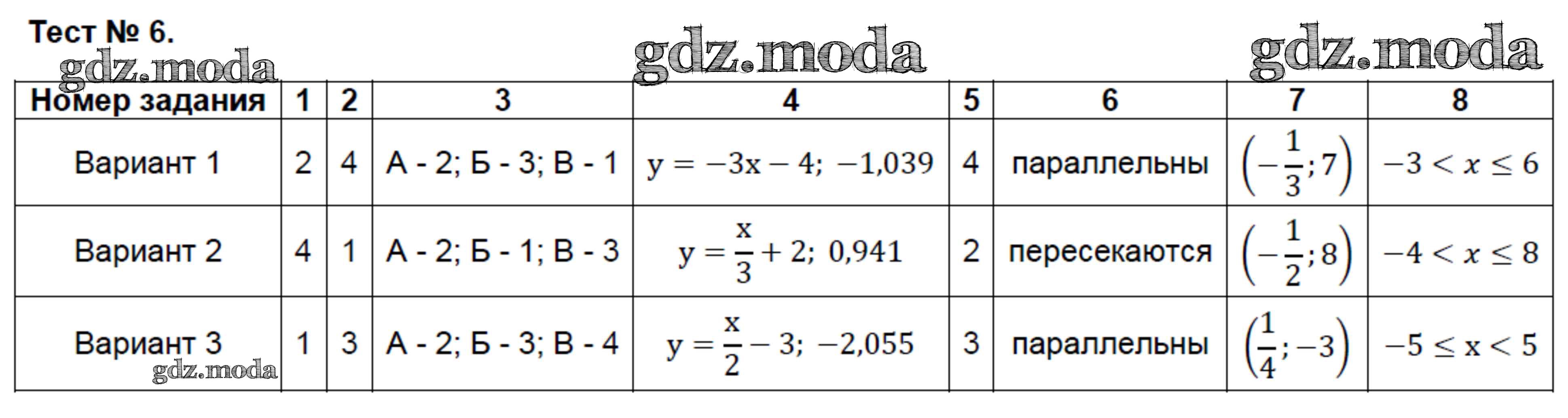 ОТВЕТ на задание № 6 Контрольно-измерительные материалы (КИМ) по Алгебре 7 класс Глазков