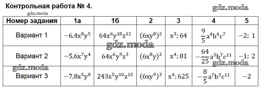ОТВЕТ на задание № 4 Контрольно-измерительные материалы (КИМ) по Алгебре 7 класс Глазков