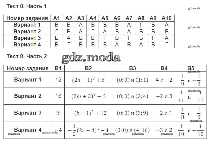 ГДЗ решение к заданию № 8 Алгебра 7 класс тесты Ключникова Е.М. (к уч. Мордковича) Экзамен 2011 ФГОС бесплатно на гдз.мода!