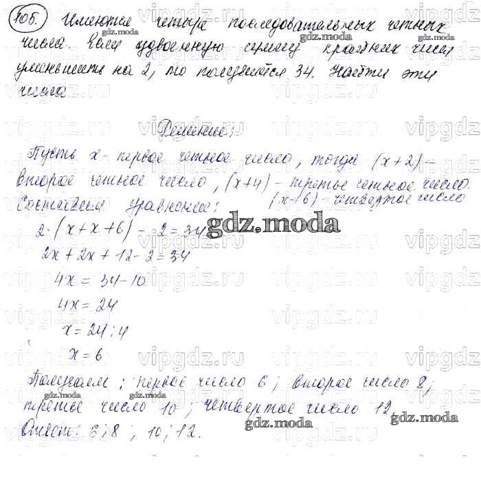 ОТВЕТ на задание № 105 Учебник по Алгебре 7 класс Колягин