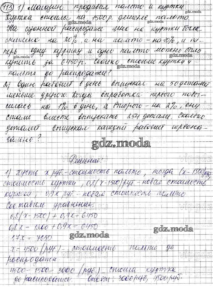 ГДЗ решение к заданию № 113 Алгебра 7 класс Колягин Ю.М. Просвещение 2012 ФГОС бесплатно на гдз.мода!