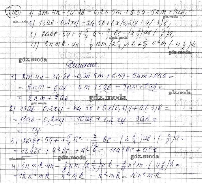 ОТВЕТ на задание № 240 Учебник по Алгебре 7 класс Колягин