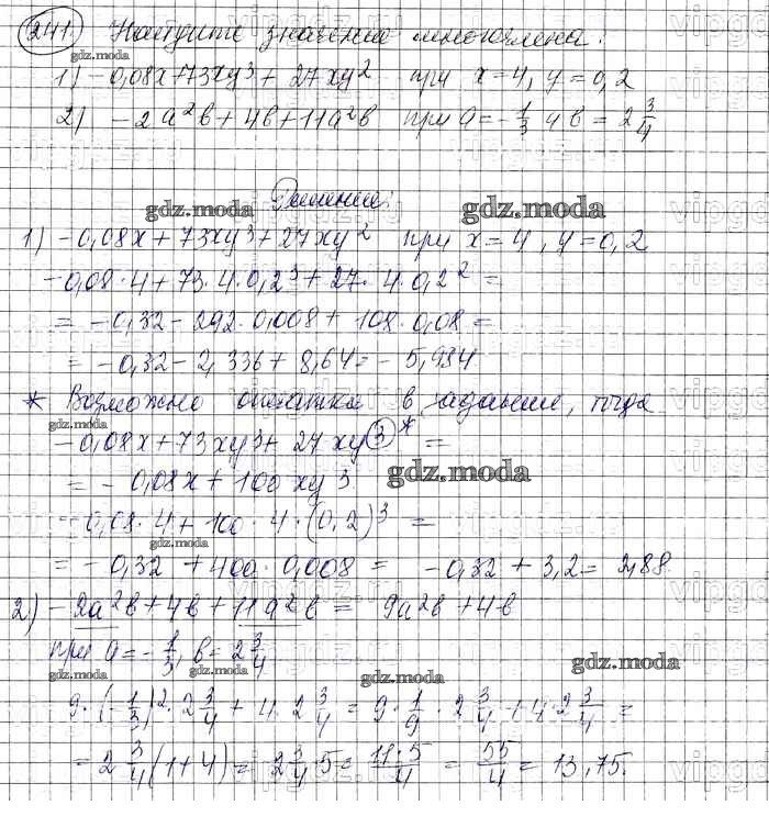 ГДЗ решение к заданию № 241 Алгебра 7 класс Колягин Ю.М. Просвещение 2012 ФГОС бесплатно на гдз.мода!