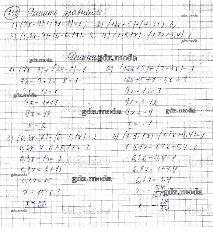 ОТВЕТ на задание № 250 Учебник по Алгебре 7 класс Колягин
