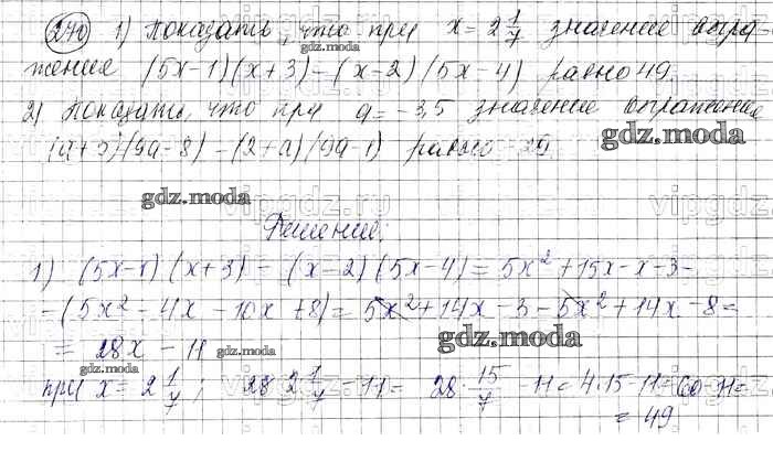ОТВЕТ на задание № 270 Учебник по Алгебре 7 класс Колягин