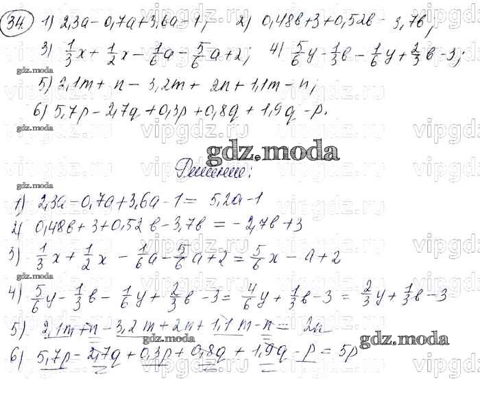 ГДЗ решение к заданию № 34 Алгебра 7 класс Колягин Ю.М. Просвещение 2012 ФГОС бесплатно на гдз.мода!