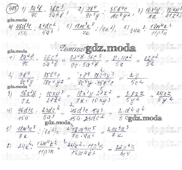 ГДЗ решение к заданию № 485 Алгебра 7 класс Колягин Ю.М. Просвещение 2012 ФГОС бесплатно на гдз.мода!
