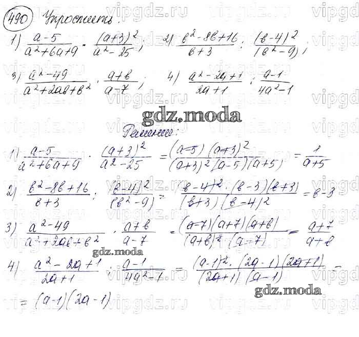 ГДЗ решение к заданию № 490 Алгебра 7 класс Колягин Ю.М. Просвещение 2012 ФГОС бесплатно на гдз.мода!