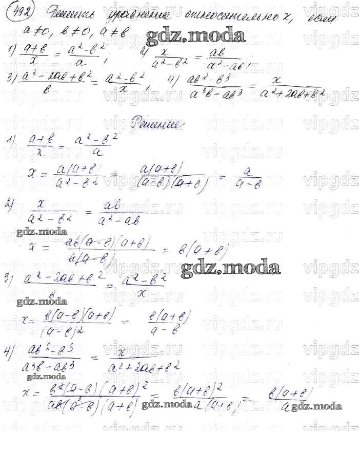 ГДЗ решение к заданию № 492 Алгебра 7 класс Колягин Ю.М. Просвещение 2012 ФГОС бесплатно на гдз.мода!