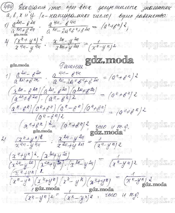 ГДЗ решение к заданию № 494 Алгебра 7 класс Колягин Ю.М. Просвещение 2012 ФГОС бесплатно на гдз.мода!