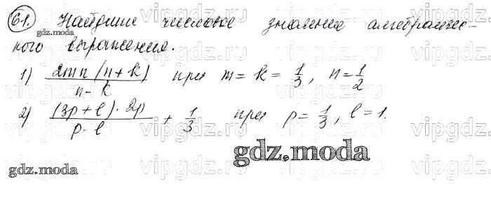 ОТВЕТ на задание № 61 Учебник по Алгебре 7 класс Колягин