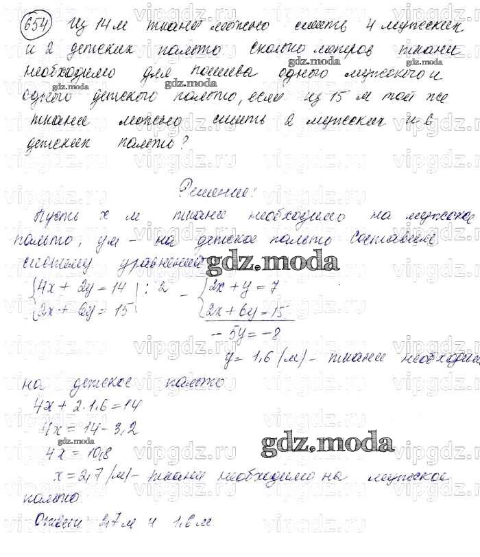 ОТВЕТ на задание № 654 Учебник по Алгебре 7 класс Колягин