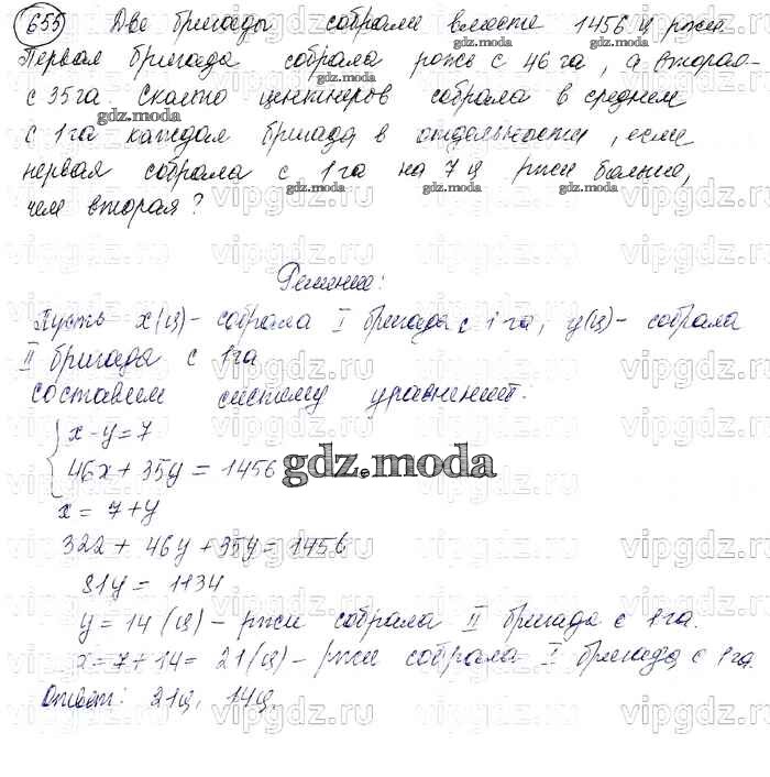 ОТВЕТ на задание № 655 Учебник по Алгебре 7 класс Колягин