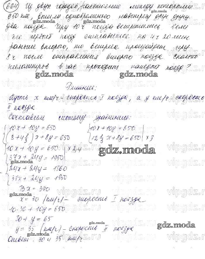 ОТВЕТ на задание № 664 Учебник по Алгебре 7 класс Колягин