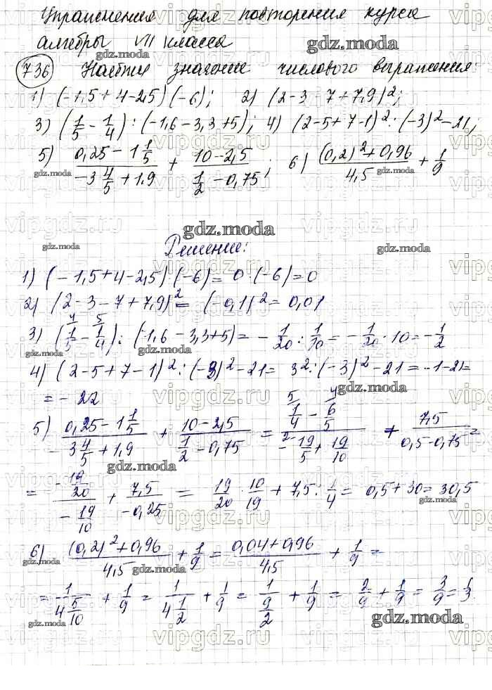 ГДЗ решение к заданию № 736 Алгебра 7 класс Колягин Ю.М. Просвещение 2012 ФГОС бесплатно на гдз.мода!