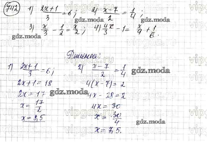 ОТВЕТ на задание № 742 Учебник по Алгебре 7 класс Колягин