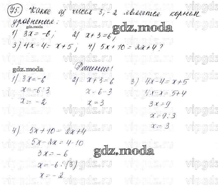 ОТВЕТ на задание № 75 Учебник по Алгебре 7 класс Колягин