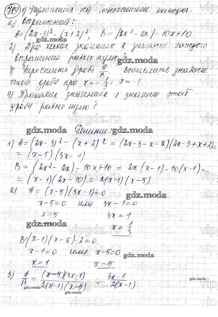 ОТВЕТ на задание № 789 Учебник по Алгебре 7 класс Колягин