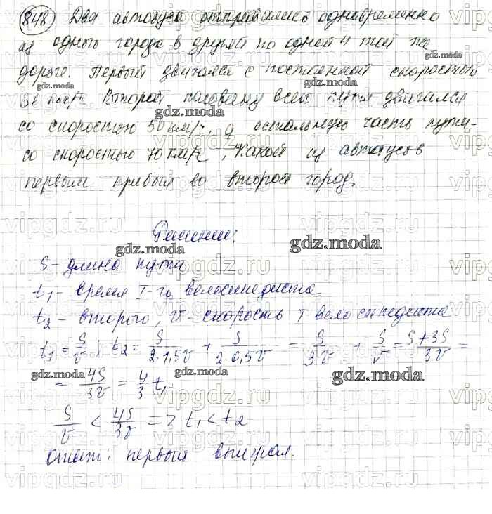 ОТВЕТ на задание № 848 Учебник по Алгебре 7 класс Колягин