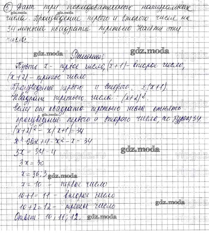 ОТВЕТ на задание № 5 Учебник по Алгебре 7 класс Колягин