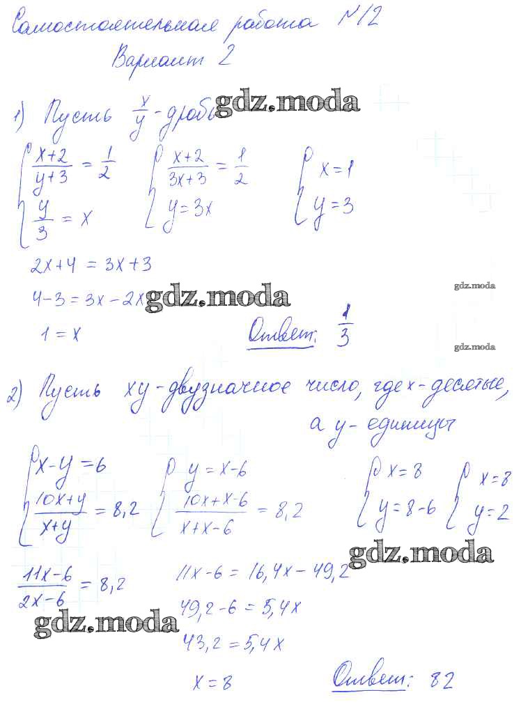 ОТВЕТ на задание № 2 Контрольные и самостоятельные работы по Алгебре 7 класс Попов УМК