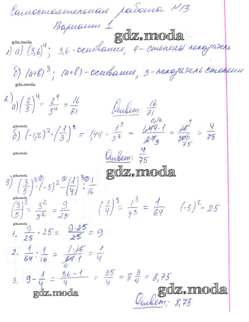 ГДЗ решение к заданию № 1 Алгебра 7 класс контрольные и самостоятельные работы Попов М.А. Экзамен 2017 ФГОС бесплатно на гдз.мода!
