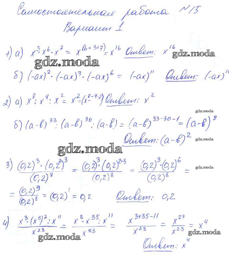 ГДЗ решение к заданию № 1 Алгебра 7 класс контрольные и самостоятельные работы Попов М.А. Экзамен 2017 ФГОС бесплатно на гдз.мода!