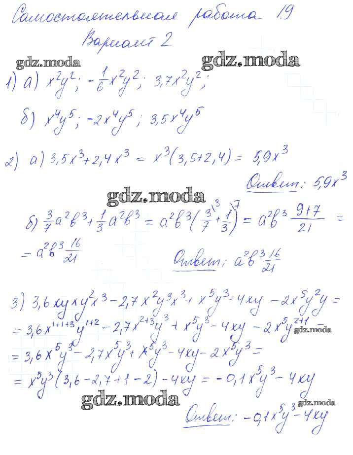 ГДЗ решение к заданию № 2 Алгебра 7 класс контрольные и самостоятельные работы Попов М.А. Экзамен 2017 ФГОС бесплатно на гдз.мода!