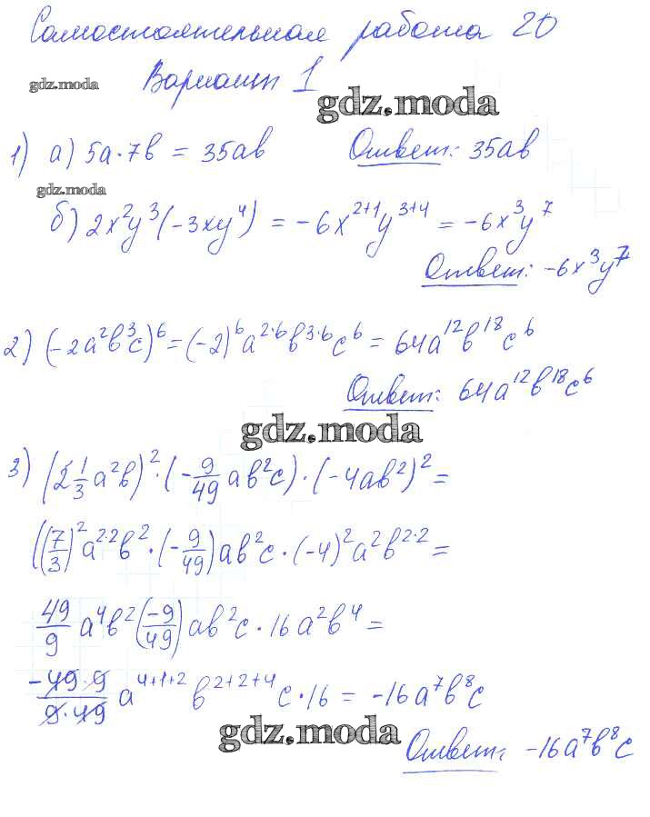 ГДЗ решение к заданию № 1 Алгебра 7 класс контрольные и самостоятельные работы Попов М.А. Экзамен 2017 ФГОС бесплатно на гдз.мода!