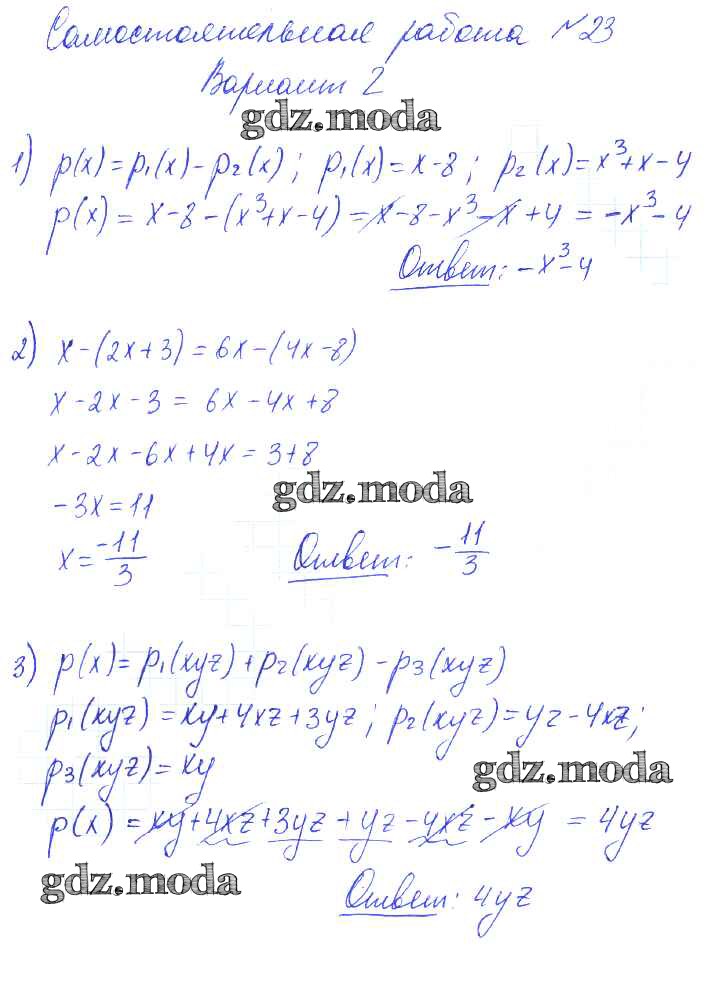 ОТВЕТ на задание № 2 Контрольные и самостоятельные работы по Алгебре 7 класс Попов УМК