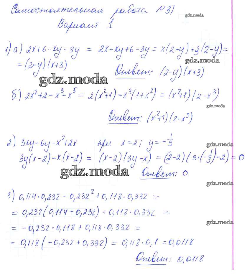 ГДЗ решение к заданию № 1 Алгебра 7 класс контрольные и самостоятельные работы Попов М.А. Экзамен 2017 ФГОС бесплатно на гдз.мода!