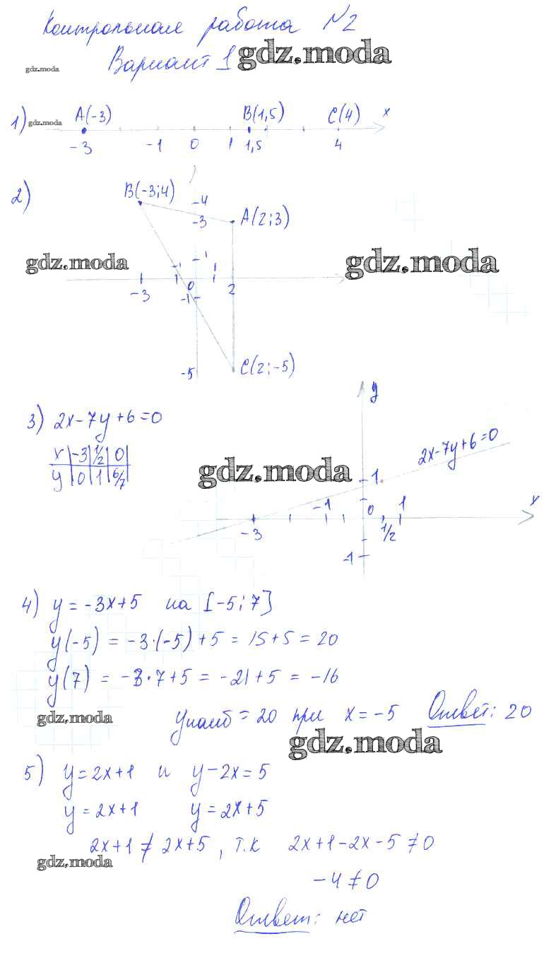 ОТВЕТ на задание № 1 Контрольные и самостоятельные работы по Алгебре 7 класс Попов УМК