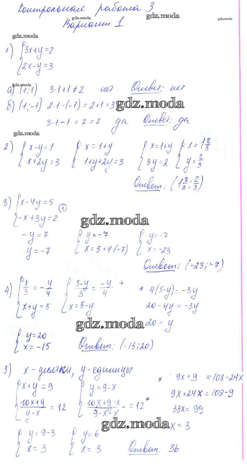 ОТВЕТ на задание № 1 Контрольные и самостоятельные работы по Алгебре 7 класс Попов УМК