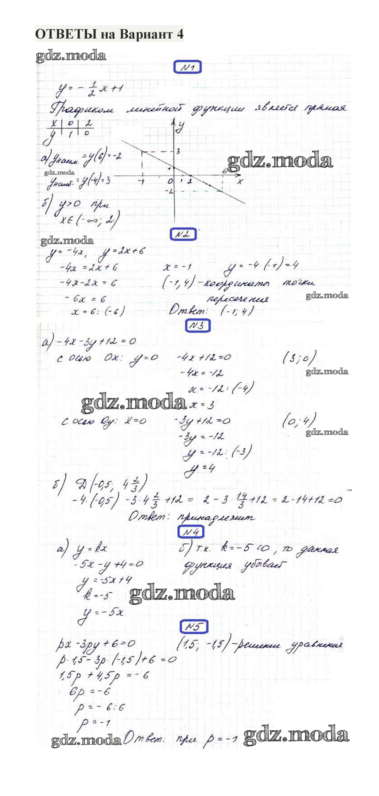 ОТВЕТ на задание № 4 Контрольные работы по Алгебре 7 класс Александрова
