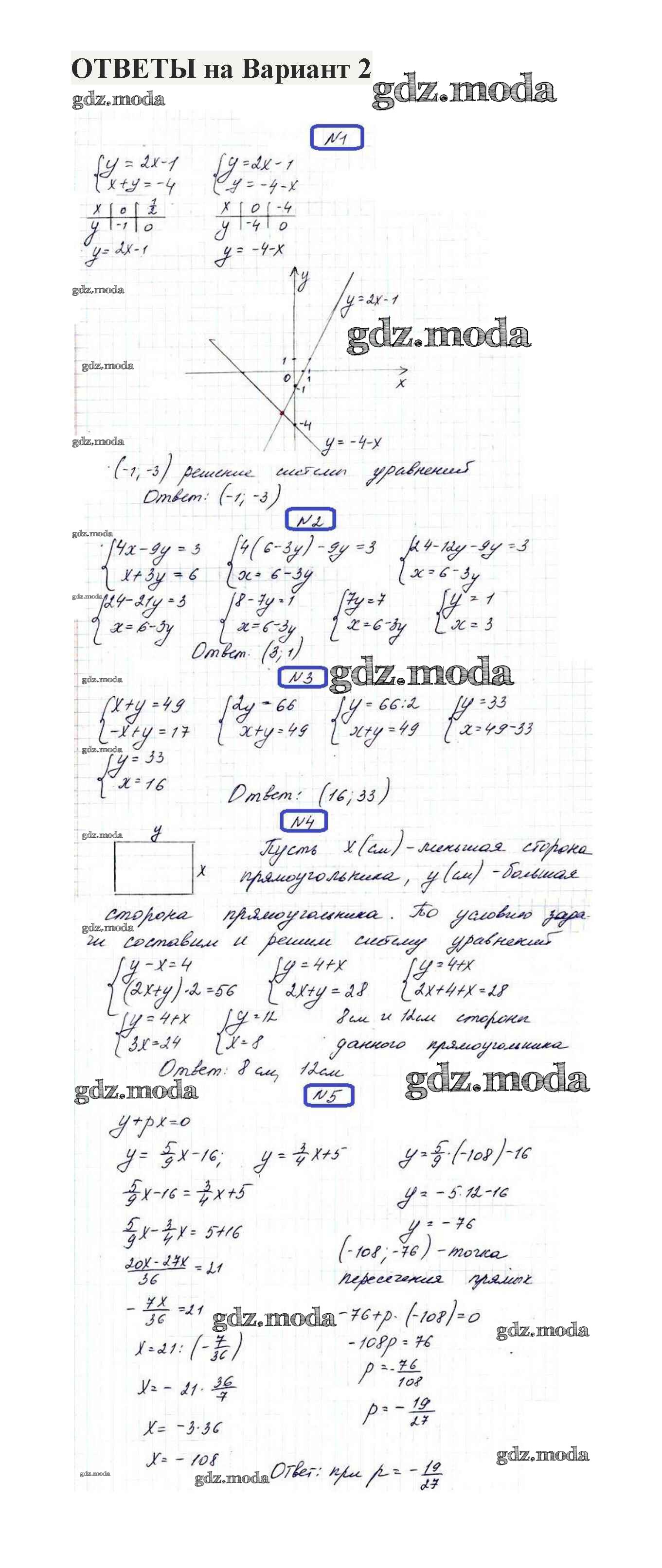 ОТВЕТ на задание № 2 Контрольные работы по Алгебре 7 класс Александрова