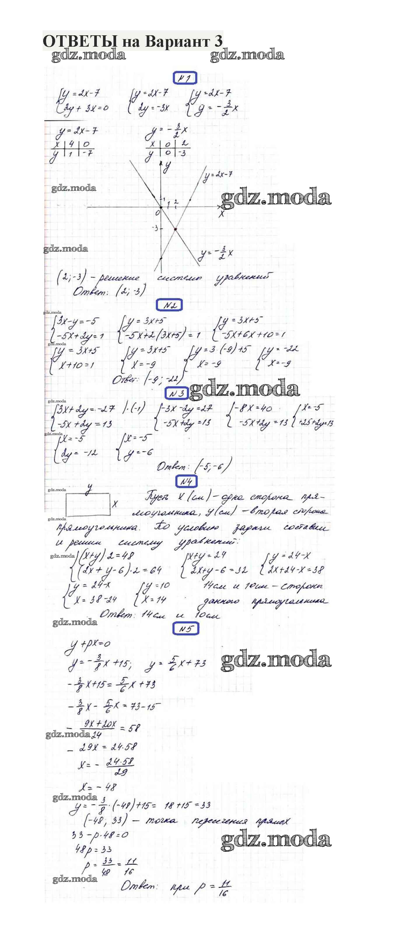 ОТВЕТ на задание № 3 Контрольные работы по Алгебре 7 класс Александрова