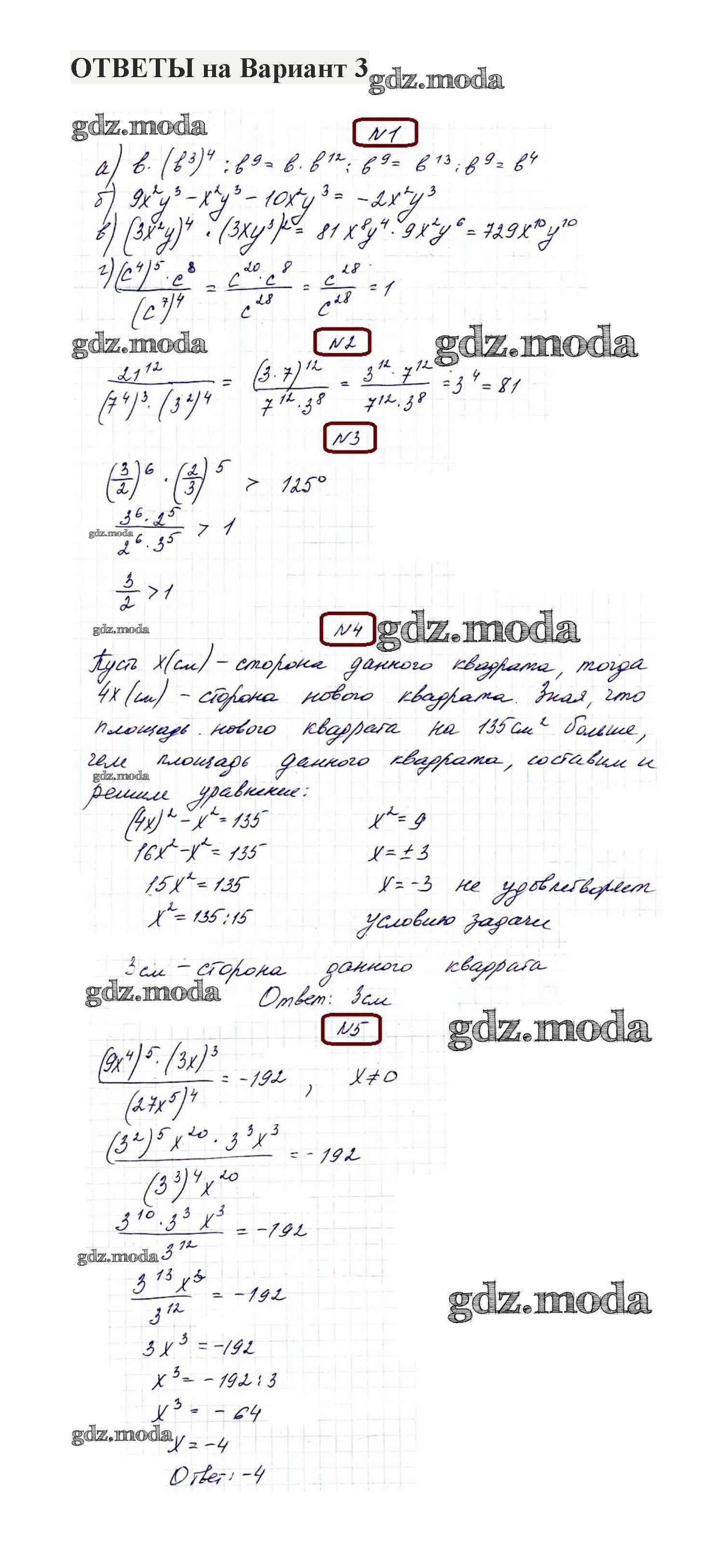 ОТВЕТ на задание № 3 Контрольные работы по Алгебре 7 класс Александрова