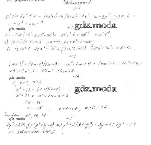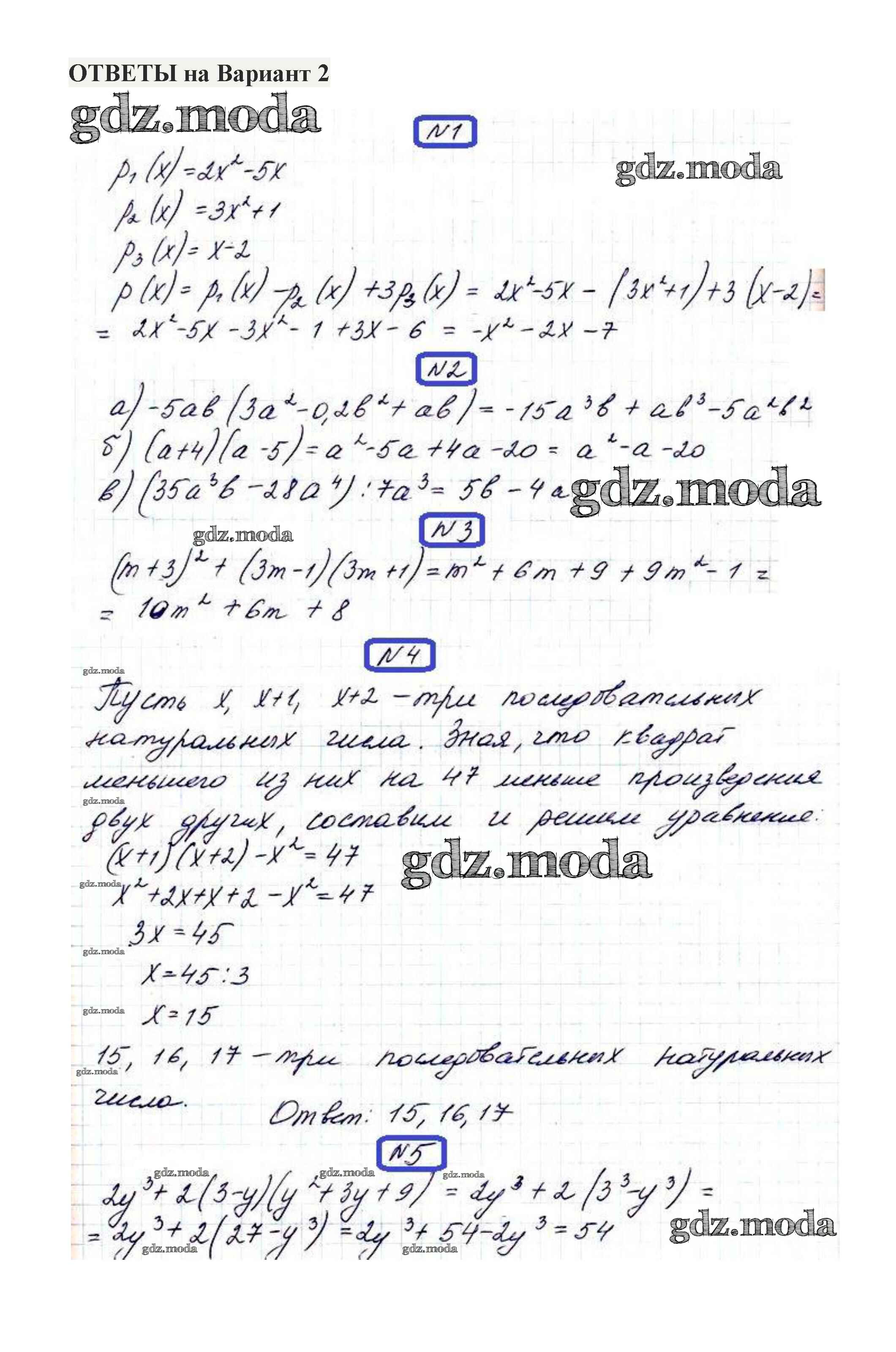 ОТВЕТ на задание № 2 Контрольные работы по Алгебре 7 класс Александрова